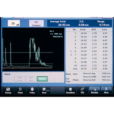 The UD-800 was developed to satisfy all your expectations. Features like annular array probes, high-resolution touch-screen, and data communication via USB or LAN makes this device easy to operate, efficient and fast. You simply have to choose the features you want. With its included 10 MHz unique 2-ring array B-Scan probe and the A-Scan biometry probe the UD-800 is a fantastic tool for high-end performance.